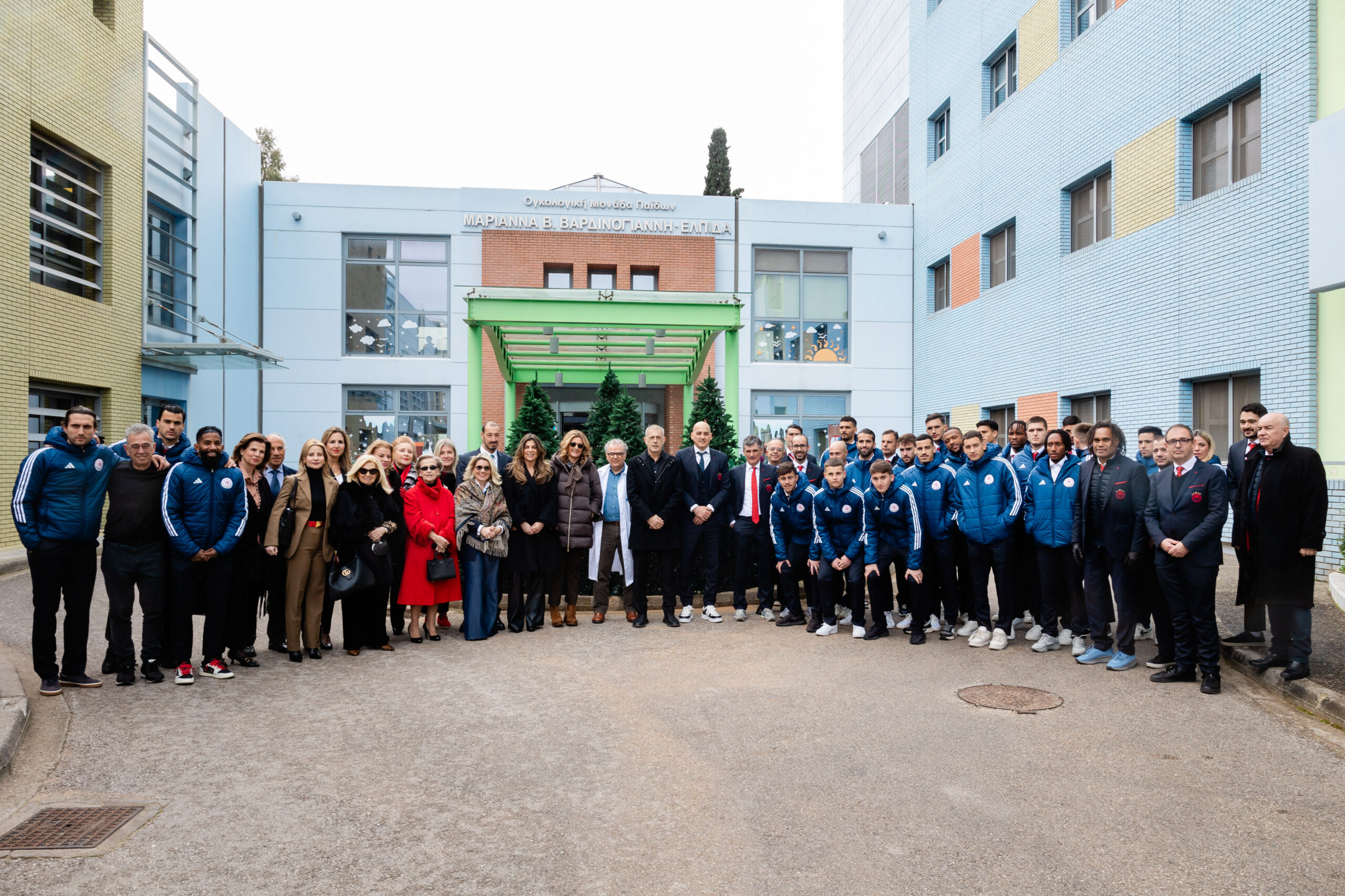 Σύσσωμη η ομάδα: αθλητές, προπονητικό επιτελείο και στελέχη επισκέφθηκαν την Ογκολογική Μονάδα Παίδων «Μαριάννα Β. Βαρδινογιάννη-ΕΛΠΙΔΑ», τη Δευτέρα 10 Φεβρουαρίου 2025, προσφέροντας χαμόγελα και αισιοδοξία στα παιδιά που νοσηλεύονται.