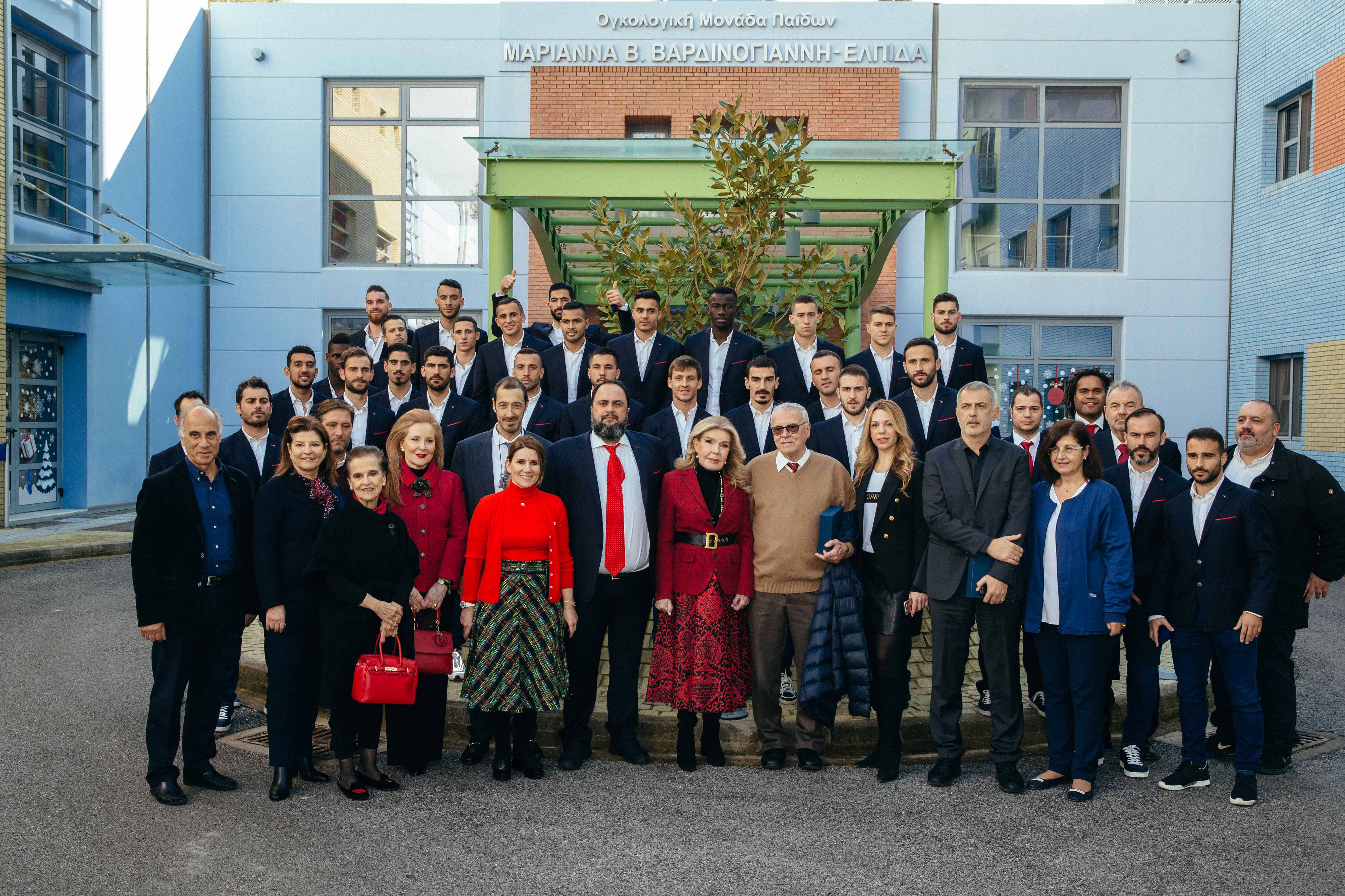 Τον κύριο Μαρινάκη και την ομάδα του Ολυμπιακού υποδέχτηκαν η Πρόεδρος του Σωματείου «ΕΛΠΙΔΑ-Σύλλογος Φίλων Παιδιών με καρκίνο» κυρία Μαριάννα Β. Βαρδινογιάννη και ο Διοικητής των Νοσοκομείων Παίδων «Π.&Α. ΚΥΡΙΑΚΟΥ» και «Η ΑΓΙΑ ΣΟΦΙΑ» κύριος Μανώλης Παπασάββας.