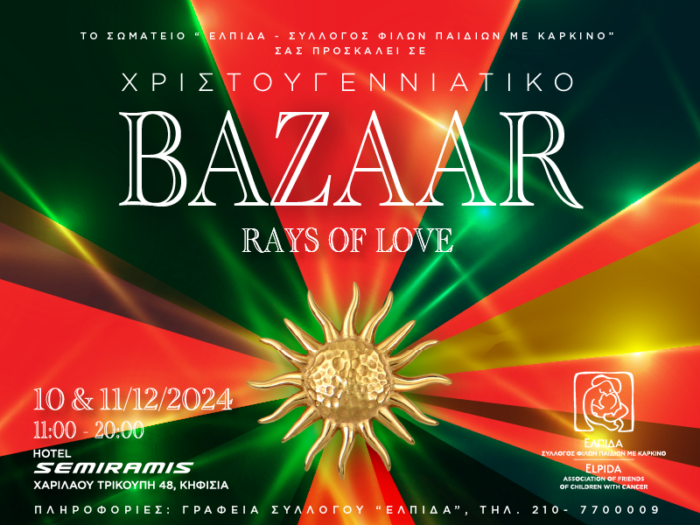 Για μια ακόμα χρονιά, το Σωματείο «ΕΛΠΙΔΑ -Σύλλογος Φίλων Παιδιών με καρκίνο», διοργανώνει το πιο χριστουγεννιάτικο Bazaar της πόλης!  Την Τρίτη 10 και την Τετάρτη 11 Δεκεμβρίου 2024 στο ξενοδοχείο «SEMIRAMIS» στο Κεφαλάρι από τις 11 το πρωί μέχρι τις 8 το βράδυ ανοίγουμε την αγκαλιά μας και στηρίζουμε τα παιδιά με καρκίνο και τις…