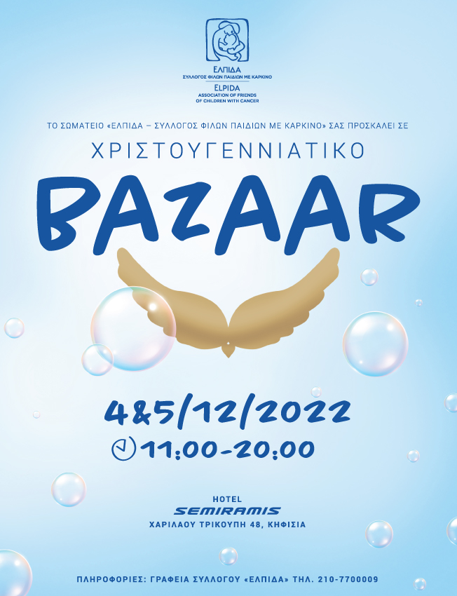 Μέσα σε ένα μοναδικό χριστουγεννιάτικο κλίμα αγάπης και προσφοράς και με την πολύ μεγάλη συμμετοχή κόσμου, πραγματοποιήθηκε με επιτυχία το Χριστουγεννιάτικο Bazaar του Σωματείου «ΕΛΠΙΔΑ – Σύλλογος Φίλων Παδιών με καρκίνο» στο Ξενοδοχείο SEMIRAMIS, την Κυριακή 4 και τη Δευτέρα 5 Δεκεμβρίου 2022. Μικροί και μεγάλοι είχαν την ευκαιρία να ζήσουν μοναδικές στιγμές στο πιο…