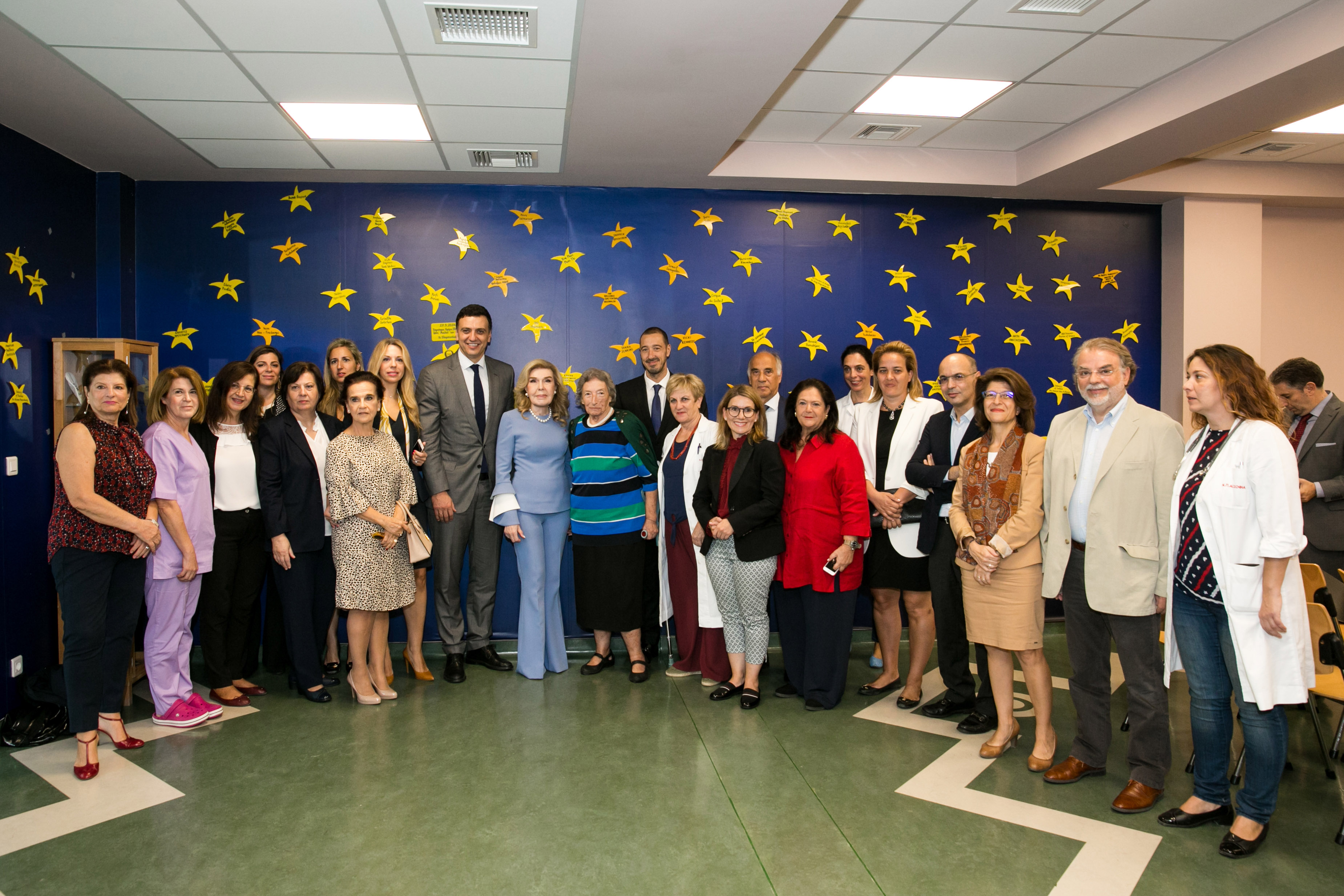 The Minister was welcomed by the President of the “ELPIDA” Association of Friends of Children with cancer, Ms. Marianna V. Vardinoyannis, the Director of the Children’s Hospitals “AGIA SOFIA” and “P.&A. KYRIAKOU”, Mr. Manolis Papasavvas, the doctors and the nursing staff of the unit, as well as members of the “ELPIDA” and “ORAMA ELPIDAS” Associations.
