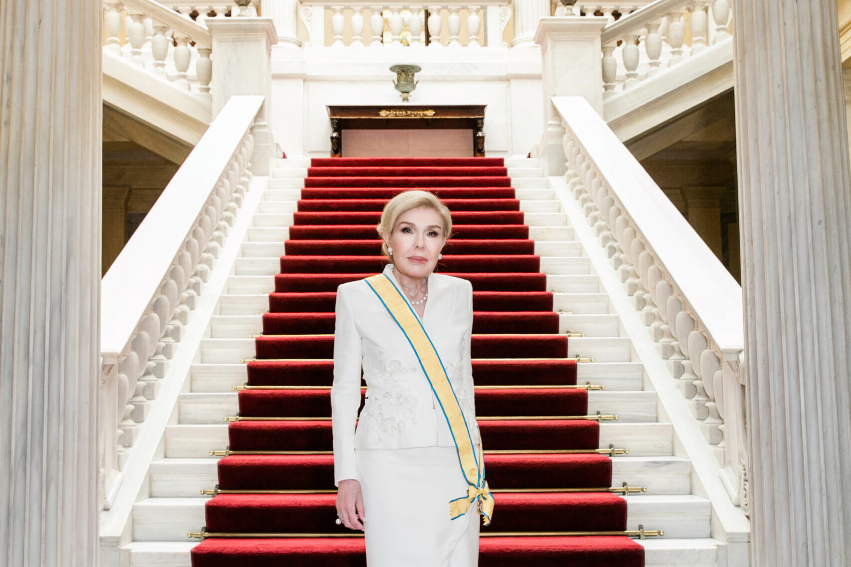 I gladly accepted the recommendation of the Foreign Minister to award Mrs Marianna Vardinoyannis the medal of the Gold Cross of the Order of Beneficence in recognition of her work”.